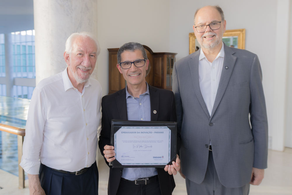 O vice-reitor da Universidade Estadual de Ponta Grossa (UEPG), professor Ivo Mottin Demiate, recebeu na última segunda-feira (15) o prêmio de Embaixador da Inovação do Paraná 2025. A cerimônia foi realizada no Gabinete de Gestão e Informações (GGI) do Palácio Iguaçu e contou com a presença do vice-governador do Estado, Darci Piana, e do secretário …