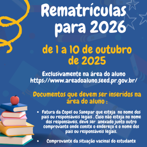 Rematrículas para o ano de 2026