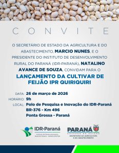 O evento ocorrerá no dia 26 de março de 2026, às 9h, no Polo de Pesquisa e Inovação do IDR-Paraná, localizado na BR-376, km 496, em Ponta Grossa, no estado do Paraná.