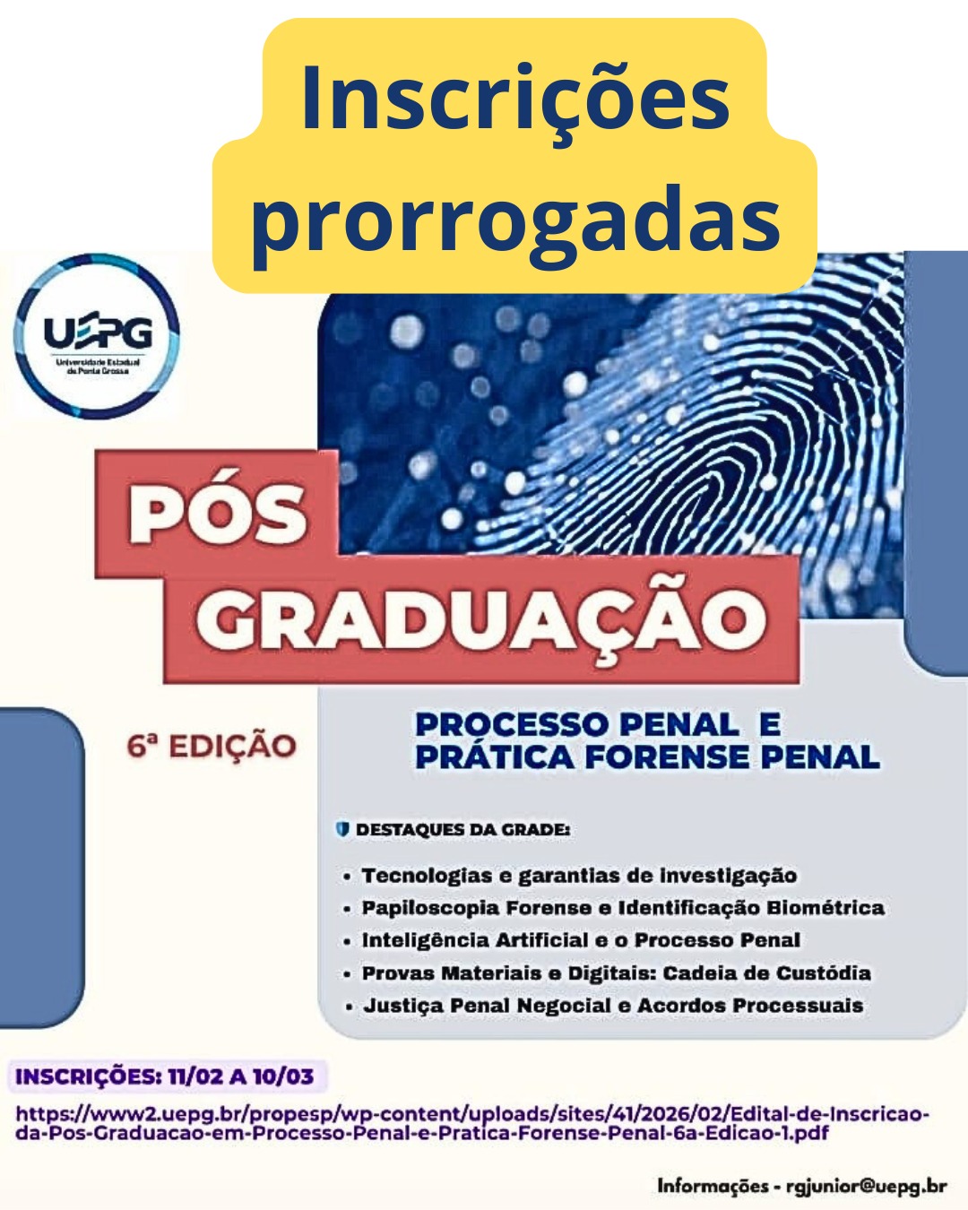 INCRIÇÕES PRORROGADAS PARA PÓS GRADUAÇÃO EM PROCESSO PENAL E PRÁTICA FORENSE PENAL – 6ª EDIÇÃO