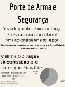 O Estatuto do Desarmamento, em vigor a partir de 2003, teve o objetivo de reduzir a circulação de armas e estabelecer penas para crimes como o porte ilegal e o contrabando de armamento. Uma pesquisa de dezembro de 2018, do DataFolha, mostrou que 61% dos brasileiros são contra a liberação da posse de arma. Em março de 2019, o Presidente Jair Bolsonaro assinou um decreto que flexibiliza a venda, compra e porte de armas no país. O Elos reuniu dados que relacionam o porte de arma e a segurança da população.