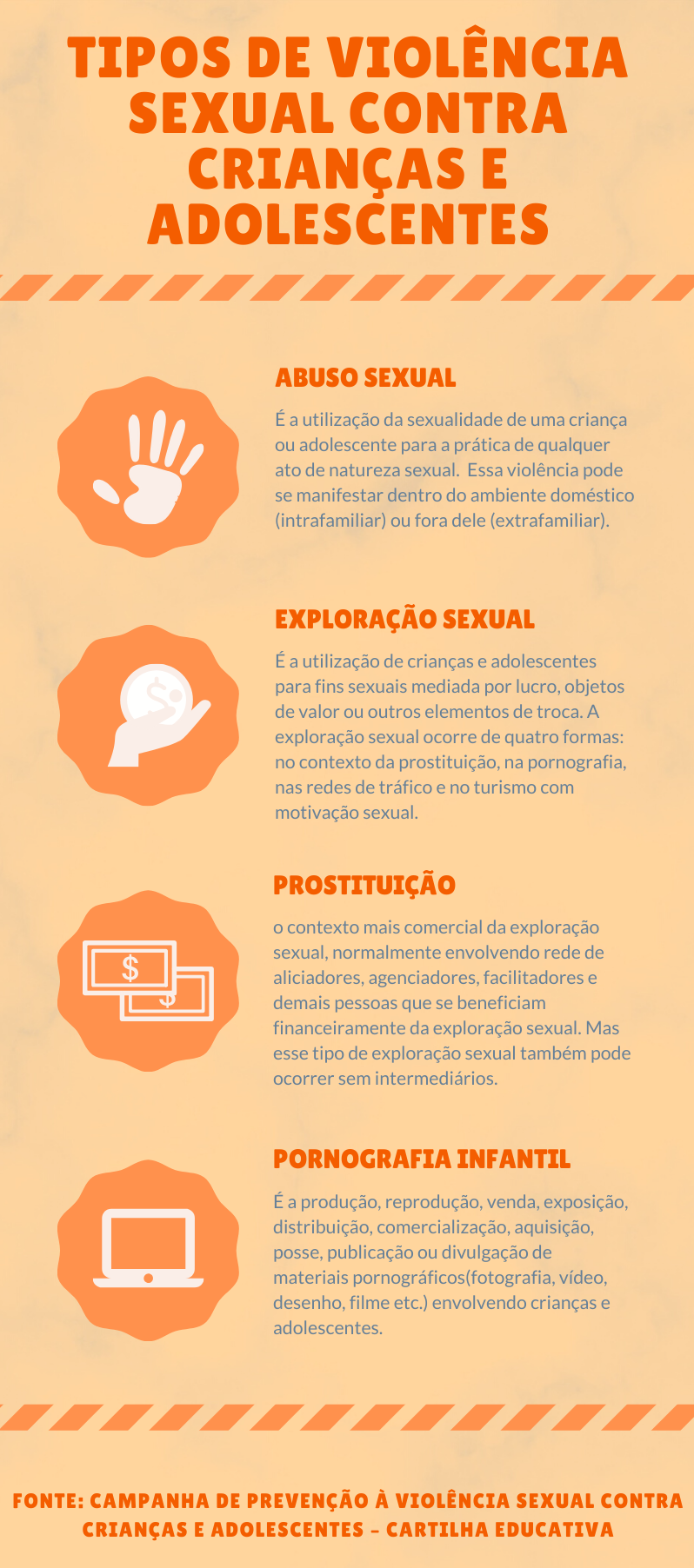 Em todo o país, durante o mês de maio, são realizadas ações de debate e conscientização sobre o abuso e à exploração sexual contra crianças e adolescentes. A data é conhecida como Maio Laranja. Este ano, por conta do isolamento social, diversas ações estão acontecendo de forma online.