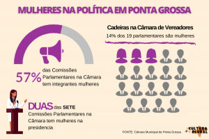 Historicamente, assim como no Brasil, Ponta Grossa apresenta desigualdade de gênero dentro da política. Desde 1885, somente 13 vereadoras foram eleitas para a Câmara Municipal de Ponta Grossa e três assumiram o cargo de outros vereadores.