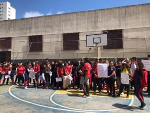 Em novembro de 2019, após uma aluna ser vítima de racismo, estudantes do Colégio Estadual Regente Feijó organizaram uma manifestação. Para Simone, espaços democráticos nas escolas podem ser substituídos por regimes autoritários com a implantação dos modelos Cívicos-Militares. Foto: Thais Lima