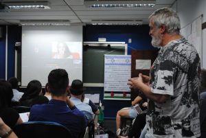 O professor aposentado do departamento de História da UEPG e membro do Comitê Ponta-grossense, Marco Aurélio Pereira, foi o último convidado a participar do debate e analisou a atual situação do país do ponto de vista do capitalismo e do colonialismo. “Sempre houve a demonização e a desumanização dos palestinos, a crença de que eles são bárbaros e incivilizados”, observa. Ao final, o professor questiona: “Se for falar de autodefesa, quem precisa de defesa? Israel, que tem apoio internacional, território e condições básicas de sobrevivência, ou a Palestina que está presa em um campo de concentração a céu aberto, sem alimentos, água, remédios e isolada do restante do mundo?”, questiona.
