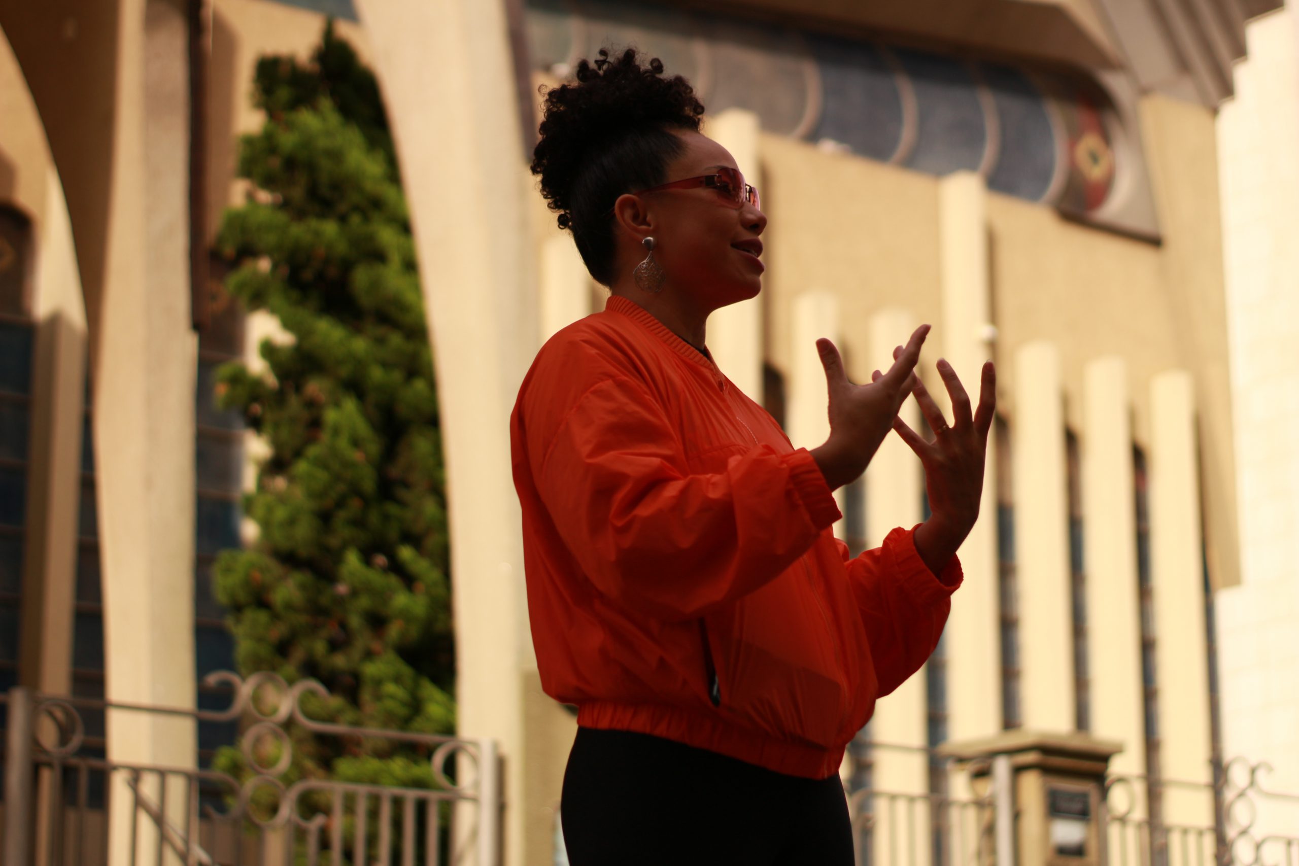 Merylin Ricielli lidera o circuito da Rota Preta PG, explicando a história da Catedral Diocesana Paróquia Sant’Ana. Foto: Maria Gallinea
