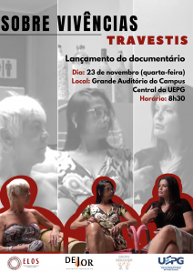 Na próxima quarta-feira (23), o projeto de extensão Elos – Jornalismo, Direitos Humanos e Formação Cidadã, em parceria com o Grupo Renascer, lançam o documentário “Sobre Vivências Travestis”. O evento é aberto ao público e acontece no Grande Auditório, localizado no Bloco A da UEPG Campus Central, com início às 08h30.