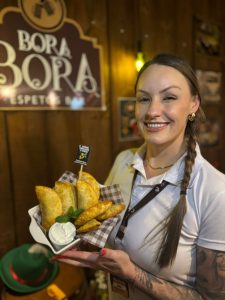 O chef Jeferson Kichileski, do Estação PG Gastrobar, criou ‘O Auto do Bolinho Defumado’, inspirado na peça ‘O Auto da Compadecida’, de Ariano Suassuna. O bolinho apresenta uma massa crocante que abraça um recheio suculento de pulled pork desfiado, com requeijão cremoso e especiarias. Este porco passa por um processo de defumação lenta e artesanal, característico da culinária BBQ. Para elevar a experiência, o bolinho contém um segundo recheio de queijo que derrete ao morder e acompanha um molho especial agridoce de pimenta defumada com um toque tropical de goiabada. Servido em porção de 6 unidades por R$ 34,90.