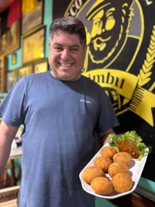‘Cenário Tropical’ é o prato criado por Lucas Klass, do Boteco da Visconde. São mini bolinhos de mandioca com recheio cremoso de queijo coalho, legumes e toque de geleia de pimenta, por R$ 45,00. O prato nasceu da ideia de representar o Brasil em cena, unindo diferentes personagens: a mandioca (raiz da nossa cultura), os legumes (que trazem leveza e cor) e o queijo coalho (símbolo do sabor regional).