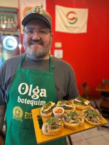 Thiago Moro, do Olga Botequim, criou o ‘Luz, Brusqueta, Ação!’, no cardápio por R$ 33,00. Seis pequenas estrelas dividem o palco: três brusquetas de carne bovina cozida, macia e perfumada por especiarias, e três de cogumelos salteados, intensos e aromáticos. Cada brusqueta entra em cena com personalidade própria: uma celebra o drama e a força, a outra o mistério e a sutileza.