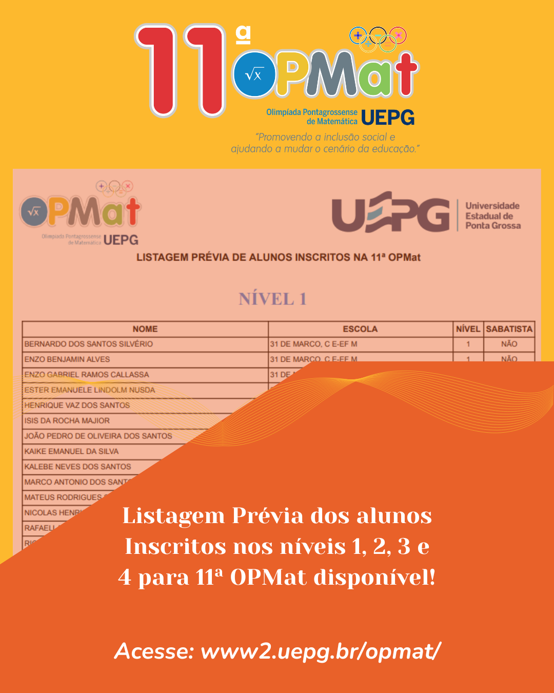 Listagem Prévia de Inscritos para 11ª OPMat – Níveis Mirim e Júnior