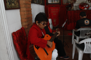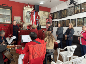 Iria Portela frequenta a Casa há mais de 7 anos. Ela explica a sua vivência espiritual no espaço. “Aqui dentro, eu percebi que a devoção não é imposta, é o Espírito Santo que chama. Se eu estou aqui hoje é porque fui chamada por Deus, através do Espírito Santo. Foi ele que fortaleceu a minha fé”, declara. Além de frequentadora, Iria também se integra aos músicos do local com seu violão.