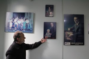 Roberto em meio a retratos e imagens da família Jendreick, que decoravam o escritório do Foto Carlos. Foto: Maria Cecília Mascarenhas