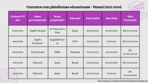 Tabela: Contratos com plataformas educacionais – Paraná (2021-2024)