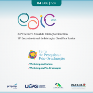 Juntamente com o EAIC a UEPG, que acontece de 04 a 06 de novembro, neste ano será realizado a 1ª Conferência de Pesquisa e Pós-Graduação e os Workshops do Complexo de Laboratórios Multiusuário (C-Labmu) e da Pós-Graduação.