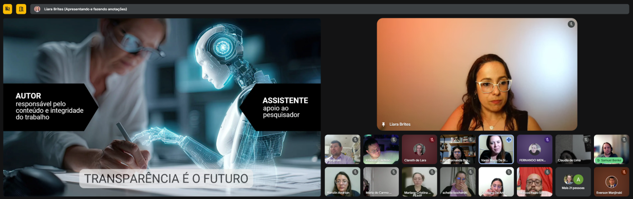 A comunidade acadêmica do PROFEI/UEPG recebeu, nesta segunda-feira (03/11), a Prof.ª Dra. Liara Saldanha Brites, pesquisadora de reconhecida atuação nacional no estudo do uso ético da Inteligência Artificial na pesquisa científica, para a palestra “O uso ético da IA na Pesquisa”. Por que discutir ética e IA na pesquisa? A popularização de ferramentas de IA …