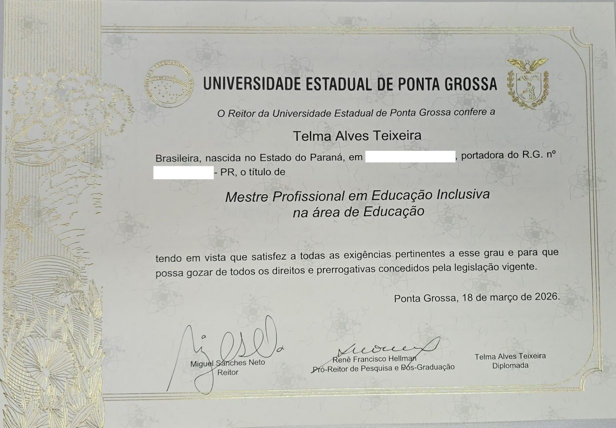 Dando continuidade ao clima de celebração neste início de ano letivo, o Programa de Pós-Graduação Stricto Sensu em Educação Inclusiva (PROFEI) da Universidade Estadual de Ponta Grossa (UEPG) tem a satisfação de anunciar a entrega de mais três diplomas de mestrado. A titulação das novas Mestras Telma Alves Teixeira, Josiana Manuela Da Silva Obnesorg e …