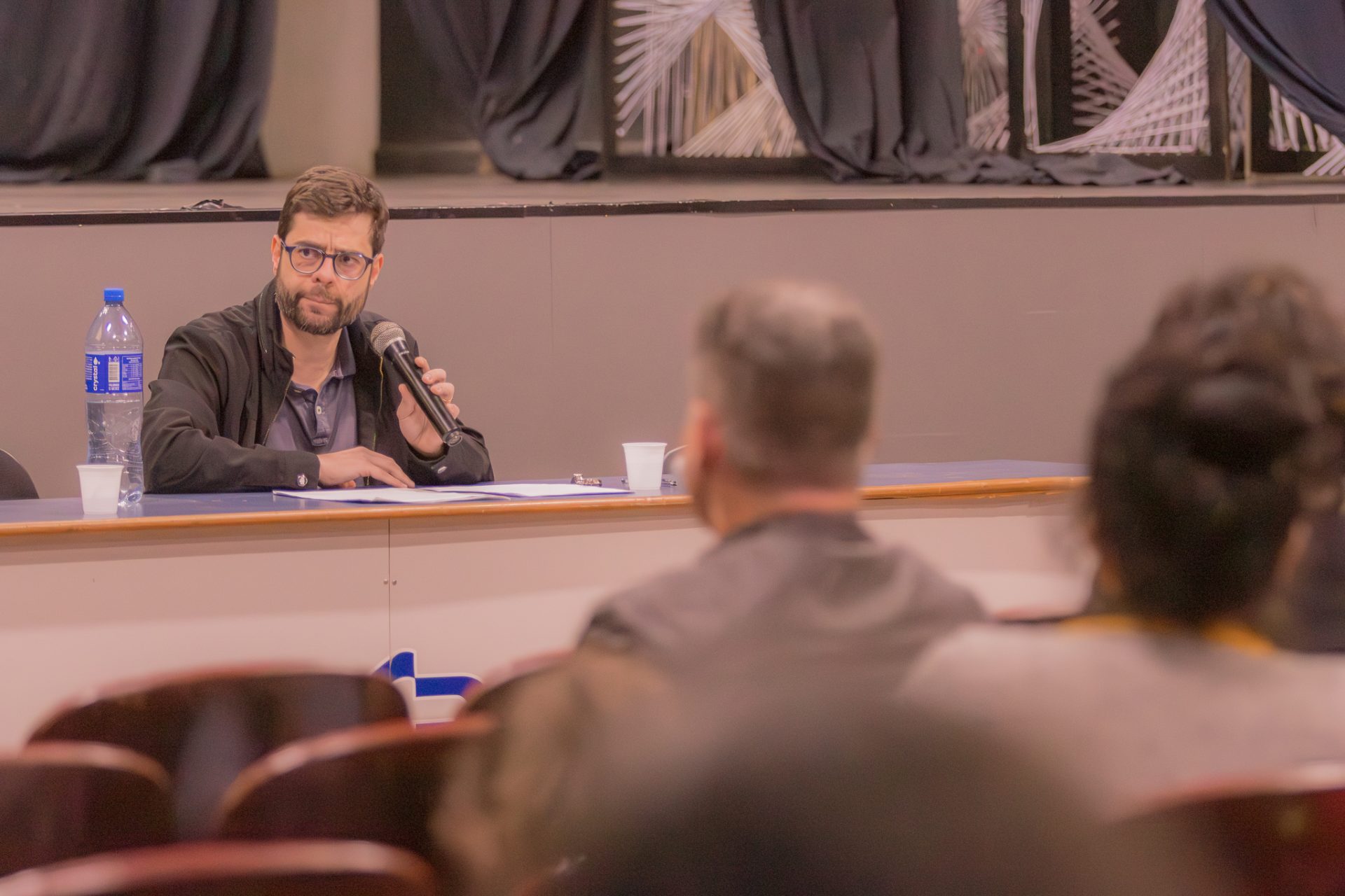 Integrante da primeira turma de doutorado, Rictor de Oliveira Dantas, que também é mestre pelo programa e egresso do curso de Letras da UEPG, destacou o caráter desafiador dessa etapa acadêmica. “Estou ansioso por ser a primeira turma, aquela que marca. A gente vai estar sempre num processo de aprendizagem, sobre o regulamento, sobre as disciplinas”, contou. O doutorando comentou ainda sobre o processo de escolha do professor André Cechinel como palestrante. “Nós levantamos alguns nomes de professores que poderiam estar aqui hoje, trazendo temas interessantes inclusive para as dissertações e teses dos próximos mestrandos e doutorandos, junto com os currículos para que os alunos pudessem conhecer as pesquisas de cada um. A partir desses nomes, fizemos uma votação”, explicou. Segundo Rictor, a escolha de Cechinel ocorreu por conta de sua trajetória acadêmica e da relevância da temática. “Acredito que o professor foi escolhido muito pelo currículo dele e pelo tema de pesquisa, que os alunos gostam bastante e acham bem interessante”, detalhou.